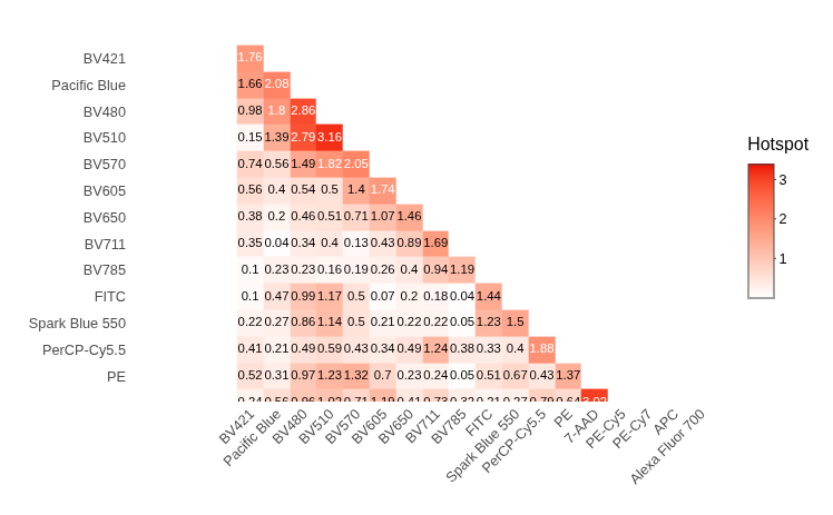 Week 11: During this session, we will utilize the spectral signature matrix isolated from raw spectral flow cytometry controls and evaluate different ways of evaluating how similar different fluorescent signatures are to each other. In the process, we will gain better understanding of the metrics behind similarity (cosine), panel complexity (kappa), and unmixing-dependent spreading (collinearity).